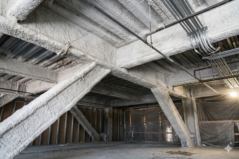 熱絶縁工事の主要な項目の一つである「耐火被覆工事」は、火災時の熱から建物の構造体や設備を守るための極めて重要な工程です。